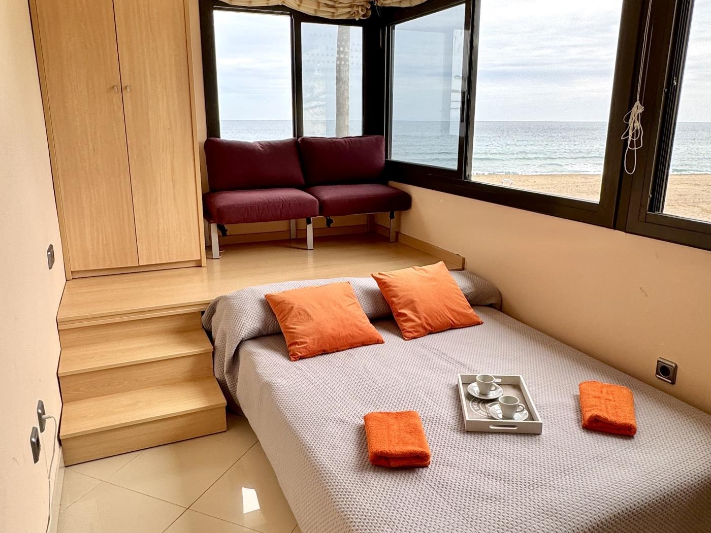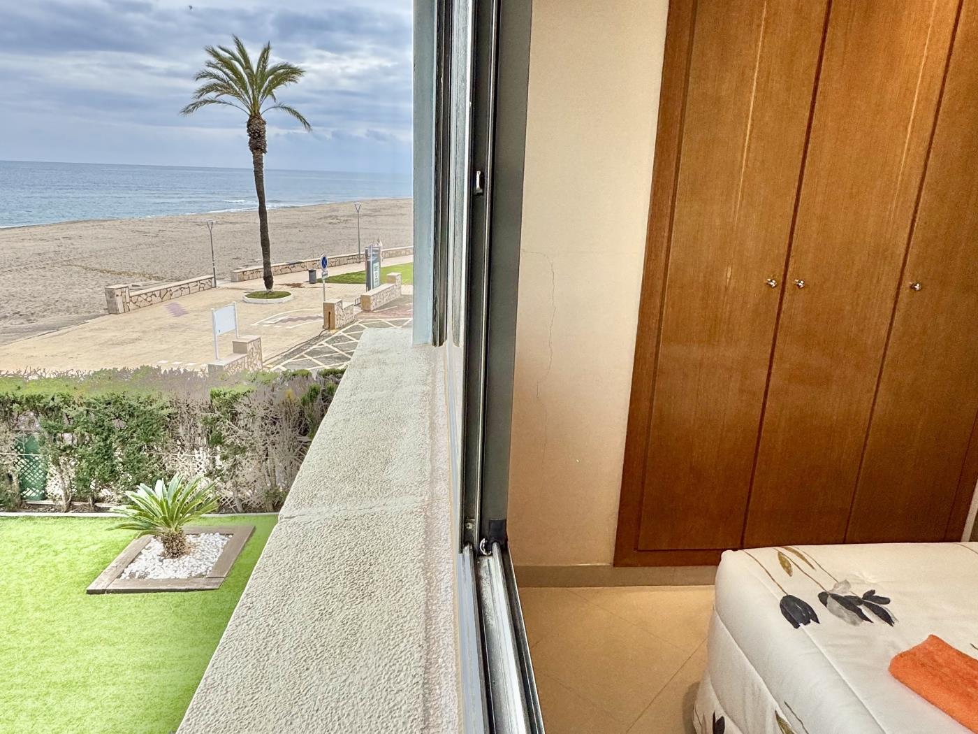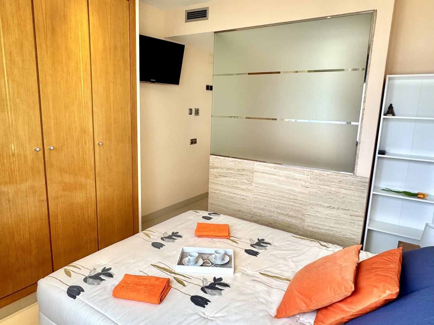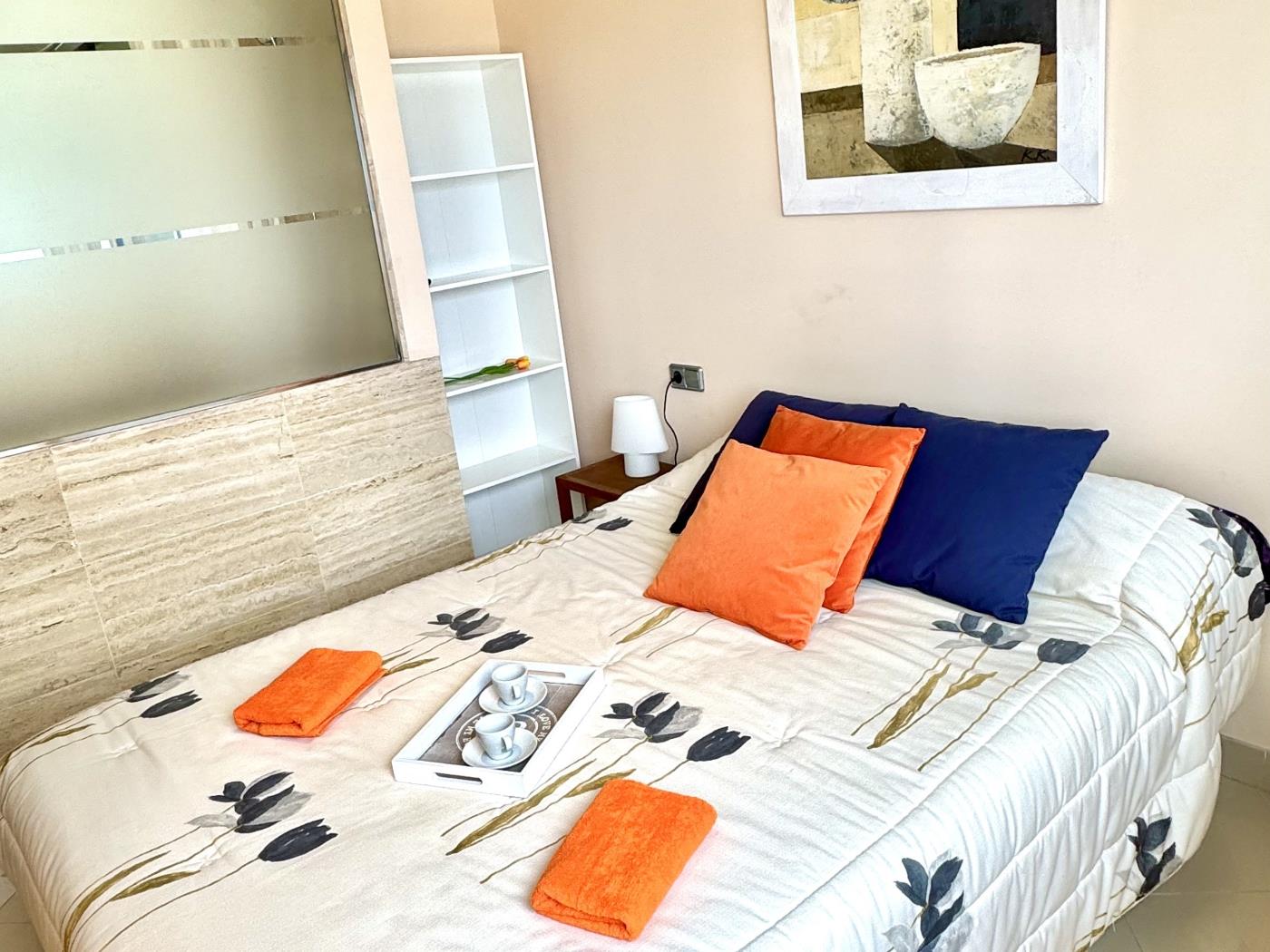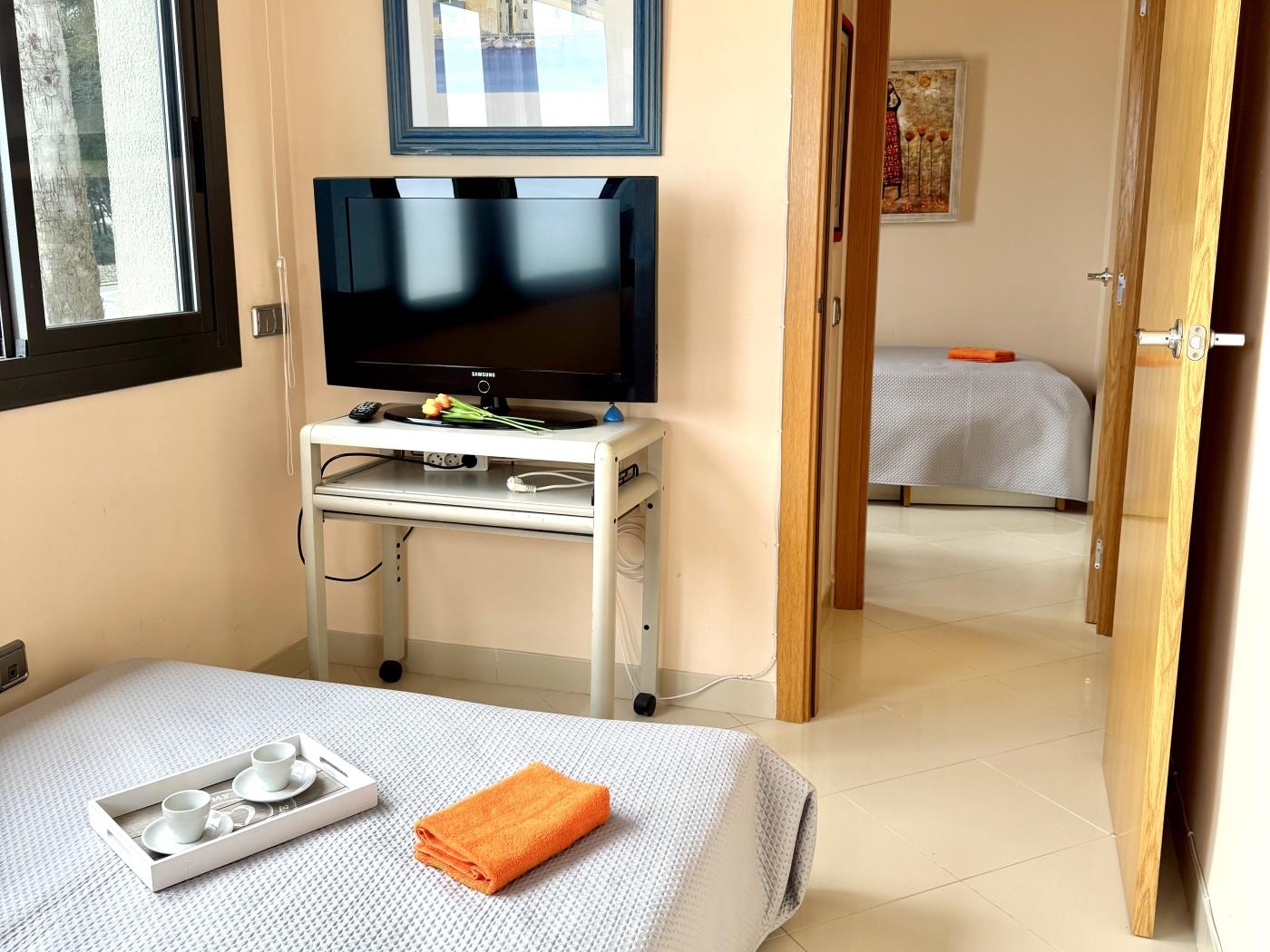 1 bedroom with 1 double bed and built-in wardrobes, exterior windows with wonderful views of PLAYA CRISTAL, and a television.