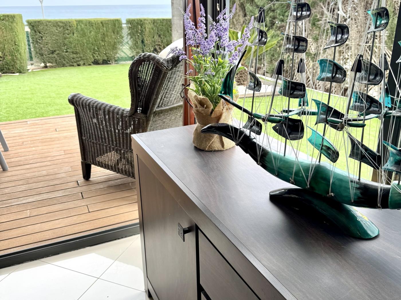 Stunning views from the living room to the garden and beach, internet, access to the terrace, a well-equipped kitchen with a dishwasher, and everything you need.